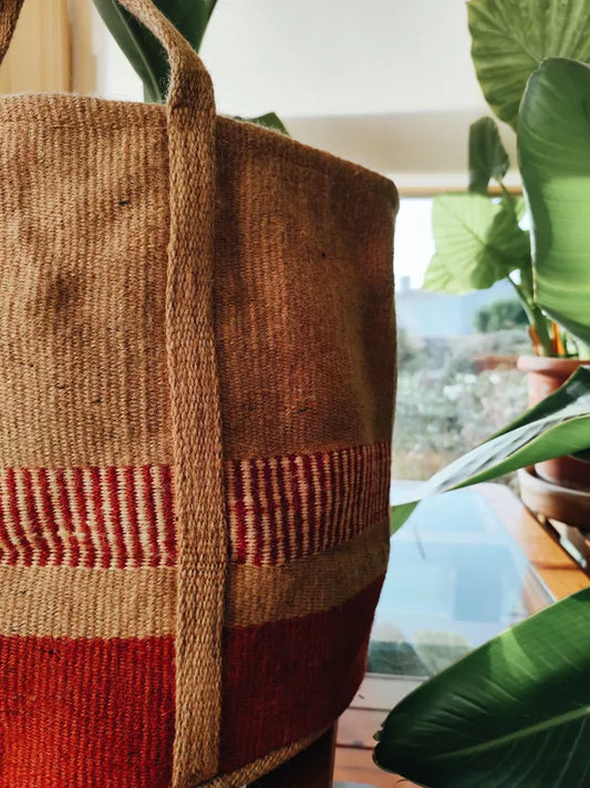 Handcrafted Jute Bag - Terracotta, Beige, White